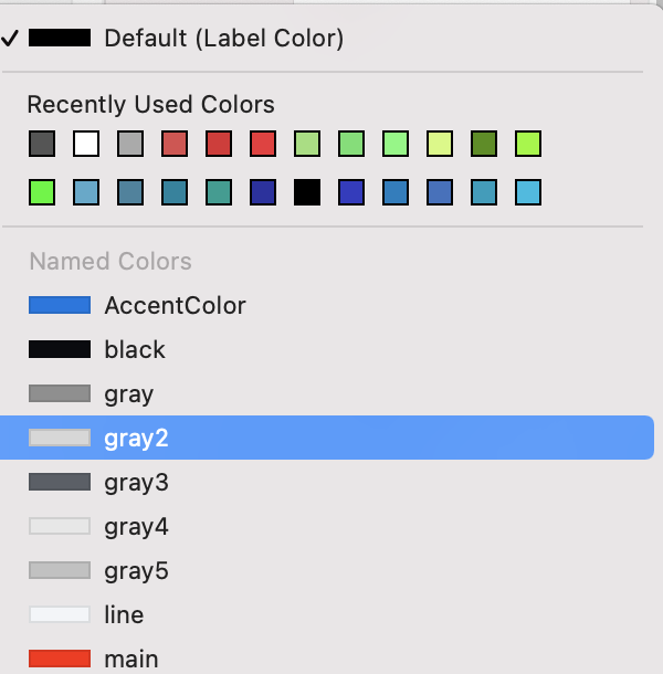 ๋ฐ๋ผ์ ์๋์ฒ๋ผ ์์ ์นดํ๋ก๊ทธ์๋ Color Asset์ถ๊ฐํด์ ์์ ๋ฏธ๋ฆฌ ๋ณด๋ฉด์ ์ฐ๊ณ ์ถ๋ค๋ฉด ~!?