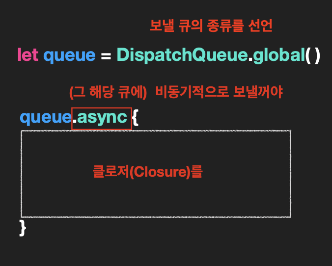 iOS ํ๋ก๊ทธ๋๋ฐ์์๋ ์์ ์ “๋๊ธฐํ๋ ฌ(Queue)"์ ๋ณด๋ด๊ธฐ๋งํ๋ฉด OS๊ฐ ์์์ ์ฐ๋ ๋์ ๋ถ์ฐ์ฒ๋ฆฌ ํด์ค๋ค.(๊ณ ๋ง๊ณ ๋๋ํ ๋ ์ ...)