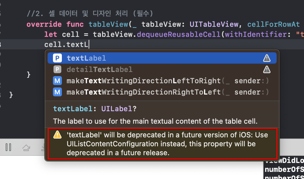 textLabel์๋ ?๊ฐ ๋ถ์ด ์๊ณ textLabel์ด ์กด์ฌ ํด์ผ ๋ค์ ์ฝ๋ text = studyList[indexPath.row]๊ฐ ์คํ ๋จ.