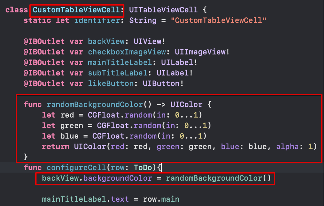 ๋ผ๋ฒจ ํฐํธ ์๊น์ด๋ ์ฌ์ด์ฆ์ฒ๋ผ ํ๋ฒ๋ง ์ค์ ํ ๋ด์ฉ๋ค์ configureCell์ ๋ฃ์ผ๋ฉด ๊ณ์ ํธ์ถ ๋จ. ํ๋ฒ๋ง ํ๊ณ ์ถ์